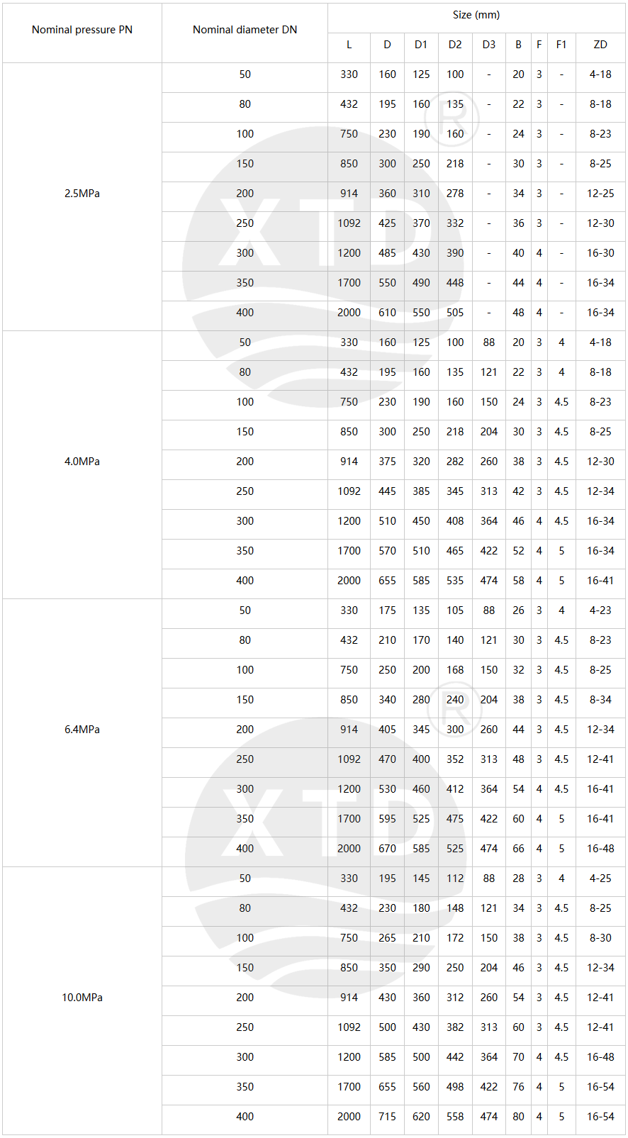 Nominal pressure: PN2.5 ~ 10.0MPa The