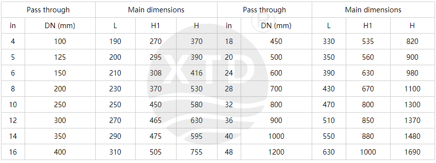 | Nominal diameter DN (mm) | DN100 ~ 1200mm, NPS4 "~ 48" |