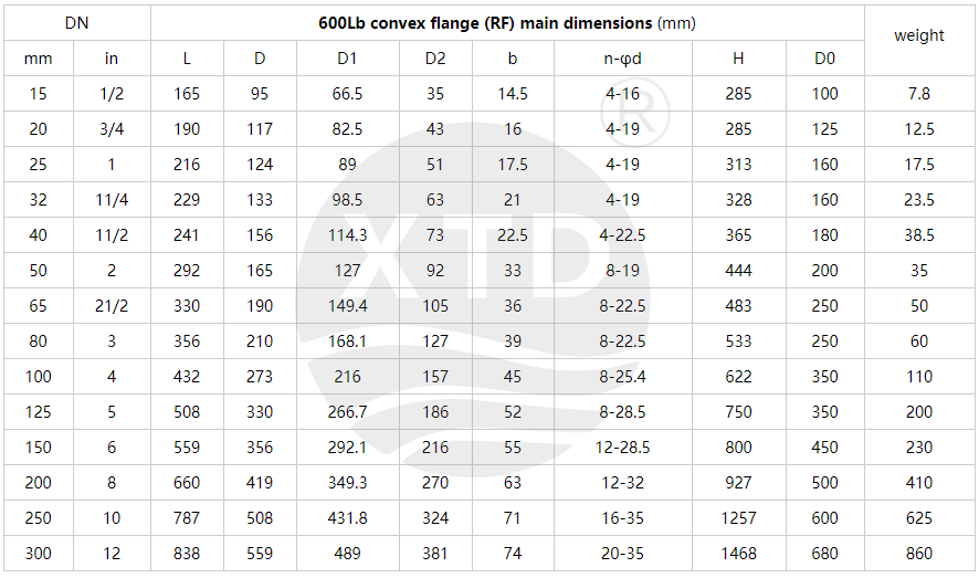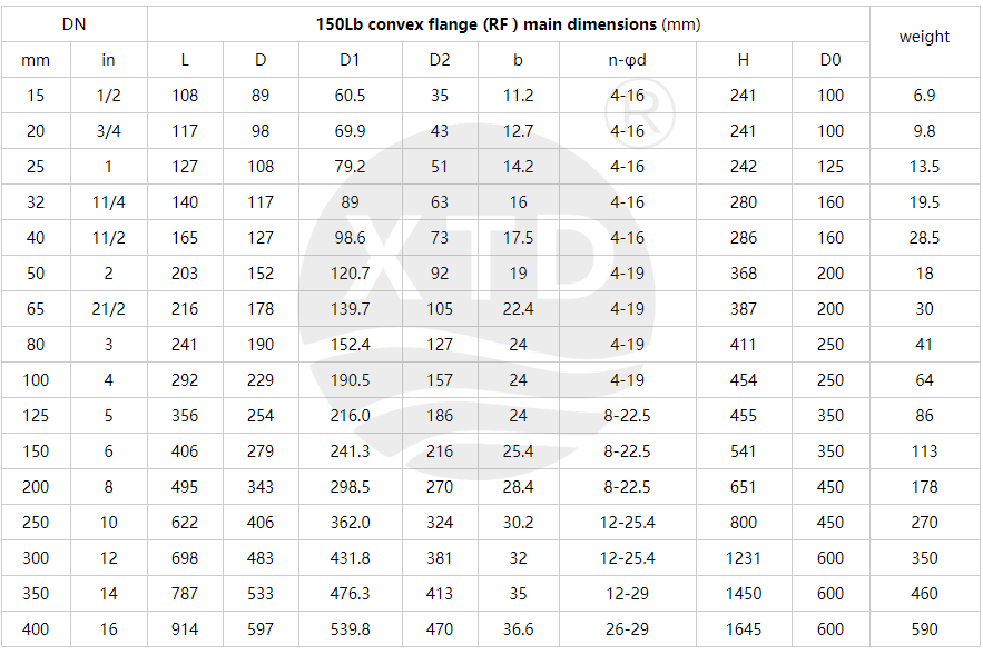 American Standard Cast Steel Globe Valves main dimensions and weight