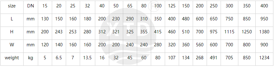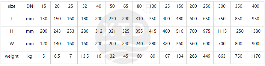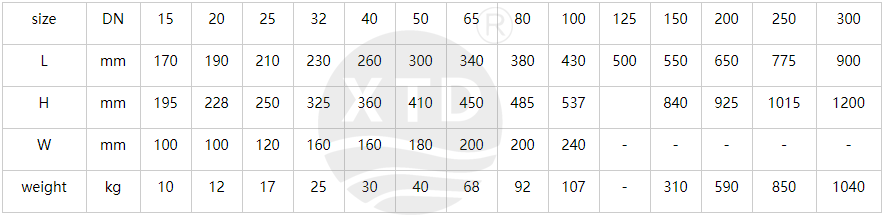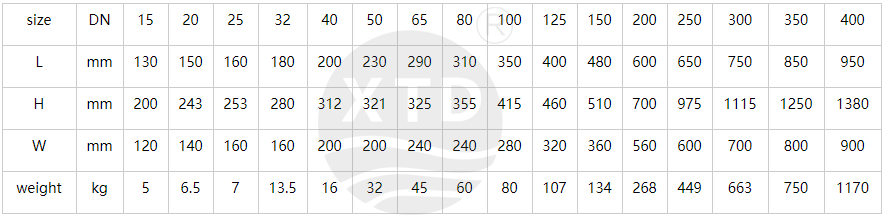 J41W stainless steel globe valve 2.5mpa main connection dimensions and weight: