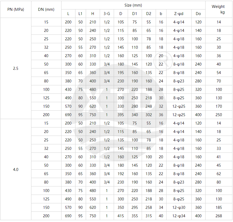 Nominal pressure: PN1.6 ~ 6.4MPa