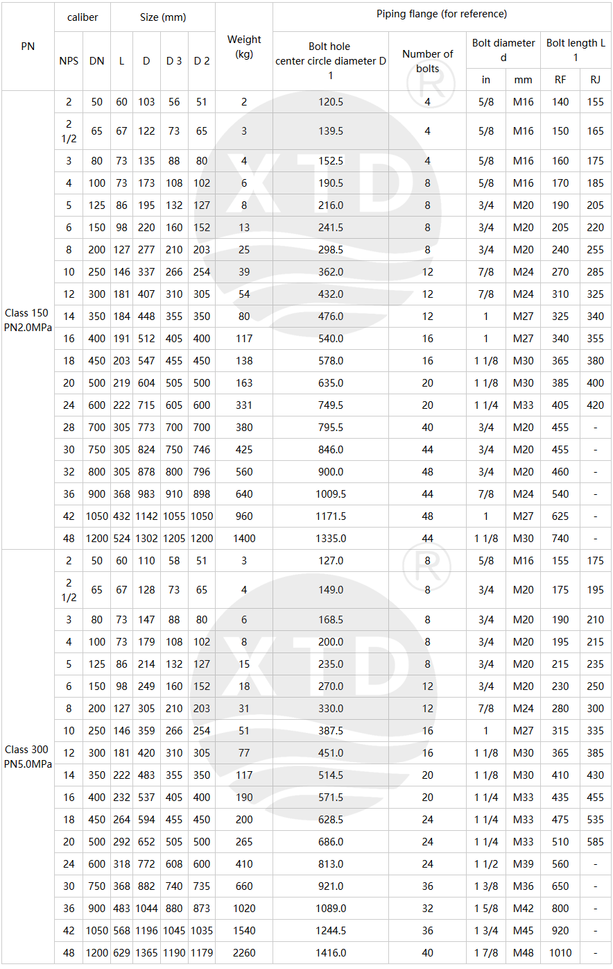 Pressure Range: Class150 ~ 600Lb, PN10 ~ 100MPa