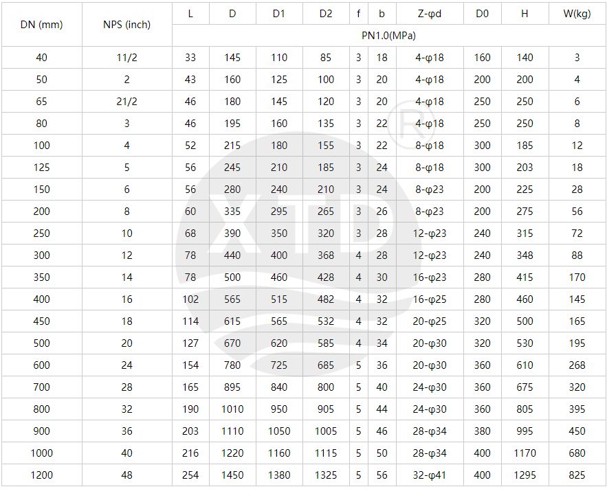 Nominal diameter: DN40 ~ 2000mm