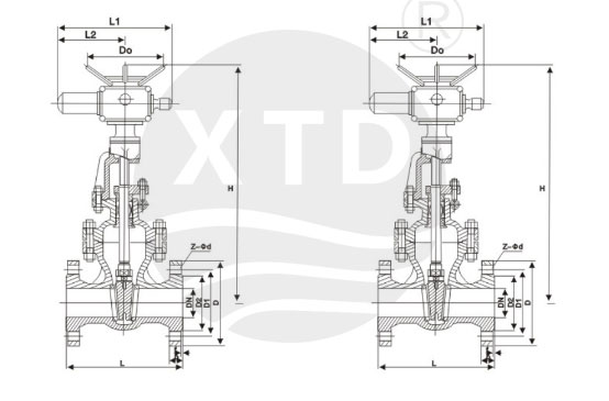 (5)介质可向两侧任意方向流动,易于安装。闸阀通道两侧是对称的。