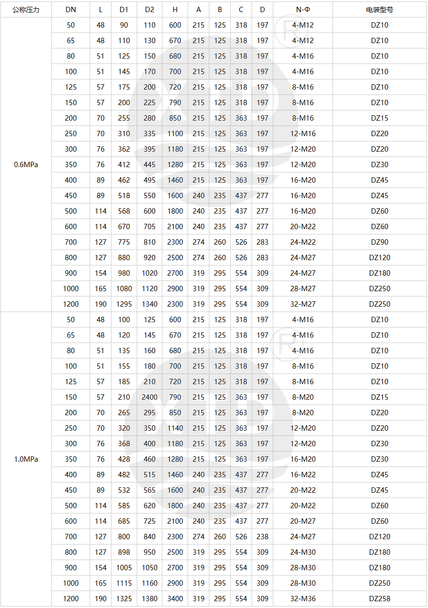 压力范围:CL150, PN0.6~2.5MPa