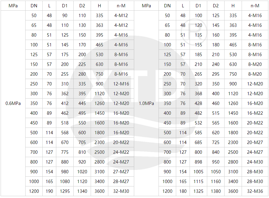 公称通径:DN50~1200mm