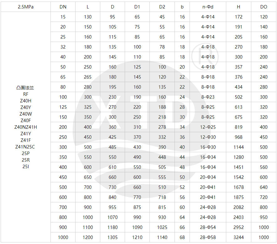 PN2.5MPa规格主要尺寸
