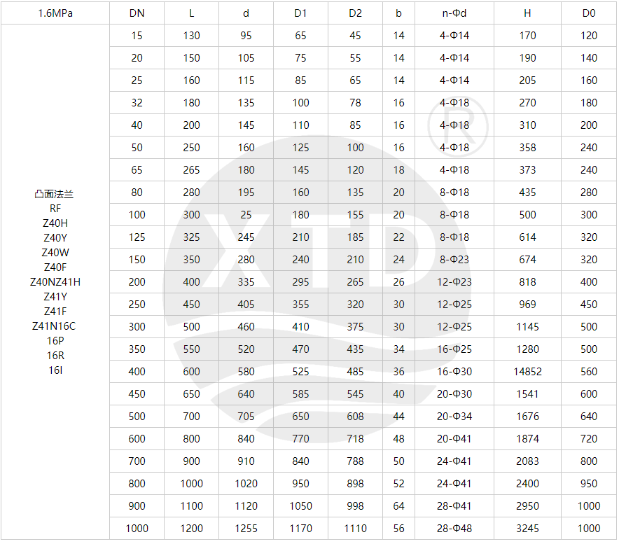 | 公称压力 | 1.6 | 2.5 | 4.0 | 6.4 | 10.0 | 16.0 |