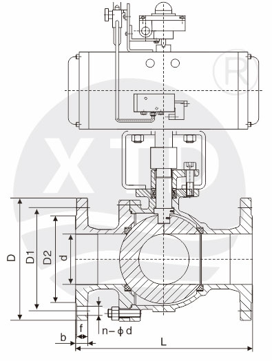 气动三通球阀可分为L形气动三通球阀和T形气动三通球阀,L形(Q44F)三通球阀用于介质流向的切换,能使相互垂直的两个通道连接;T形(Q45F)三通球阀用于介质分流、合流及流向切换。T形三通可以使三个通道相互连通或使其中的两个通道连通。三通球阀一般采用两阀座结构,亦可根据用户要求采用四阀座结构。