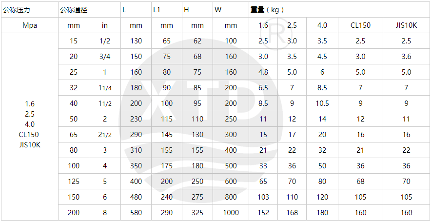 | Mpa | 1.6 | 2.5 | 4.0 | CL150 | JIS10K |