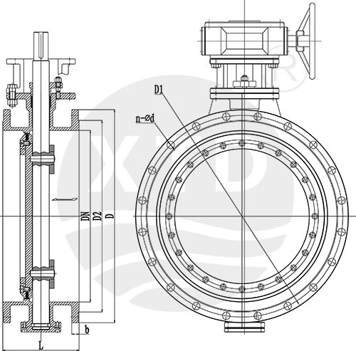 D343H-10C、D343Y-10C、D341H-10C蜗轮法兰式硬密封蝶阀连接尺寸: