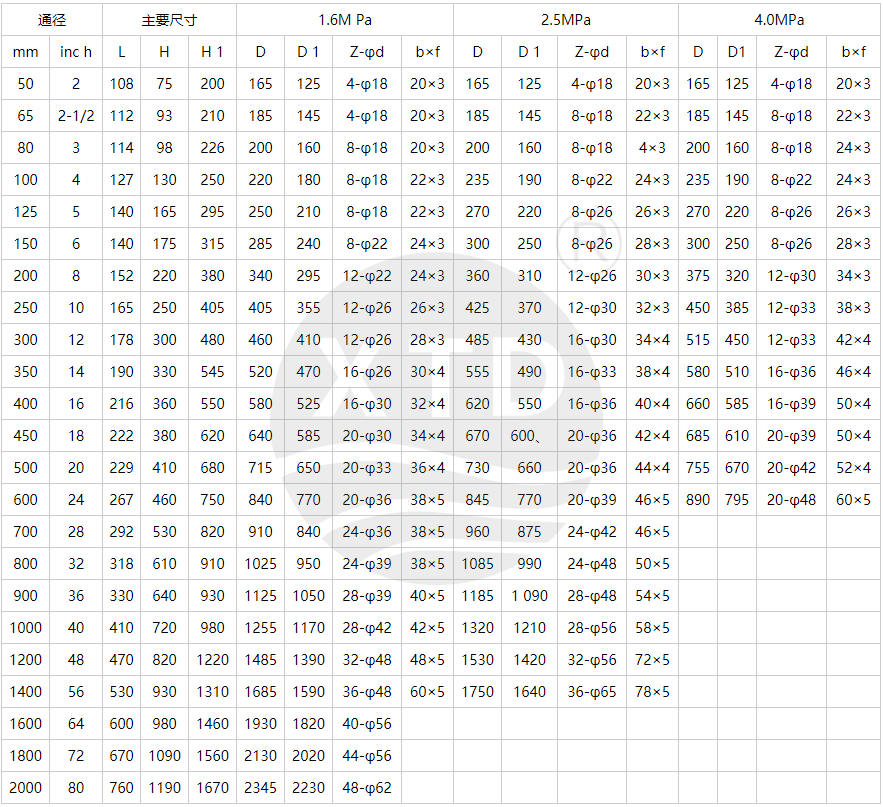 | 公称压力 | 0.6MPa | 1.0MPa | 1.6MPa | 2.5MPa | 4.0MPa | |