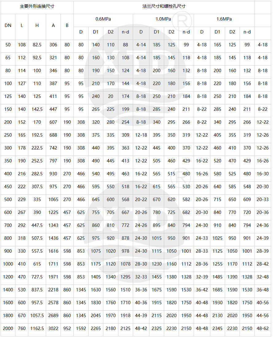 公称通径:DN50-DN2000