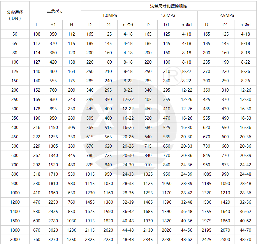 公称通径:DN50~2000mm