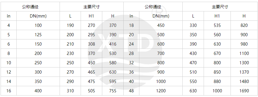 | 公称通径DN(mm) | DN100~1200mm、NPS4"~48" |