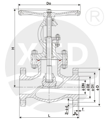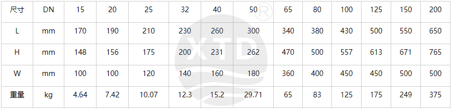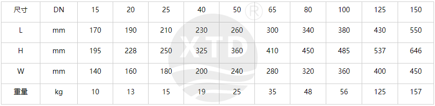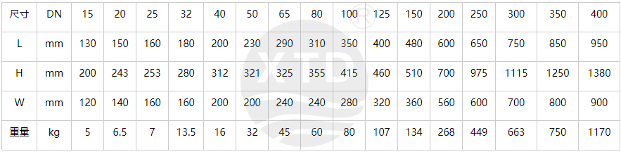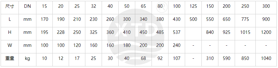 J41W不锈钢截止阀2.5MPa主要连接尺寸及重量: