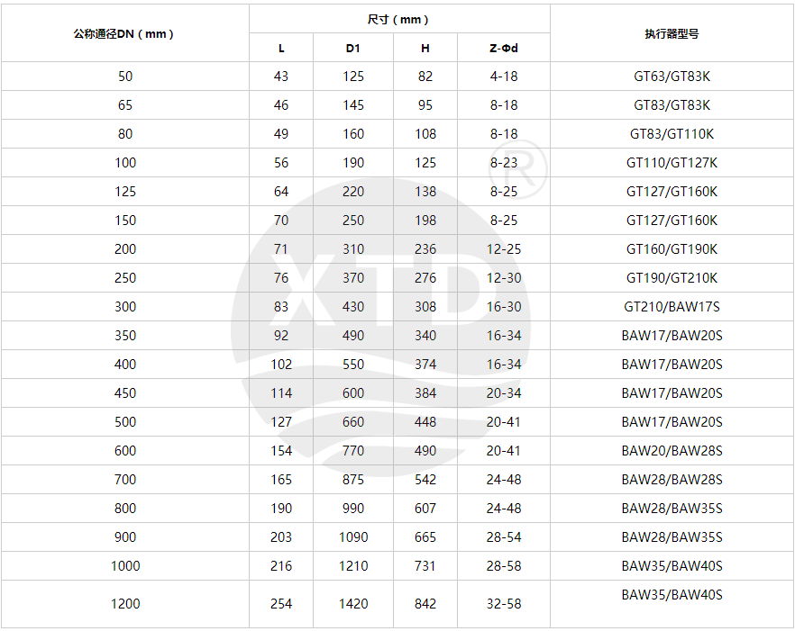 | 执行器 | 型号 | GT系列、SW系列、BAW系列 | ||
