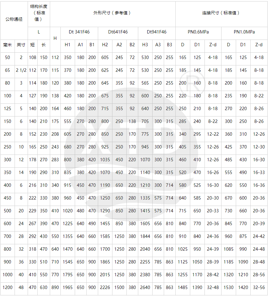 D341J全衬胶法兰式蝶阀_主要技术参数